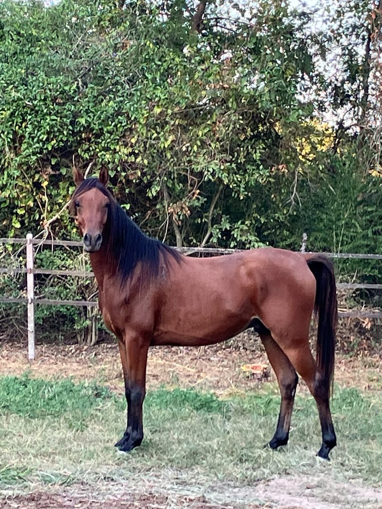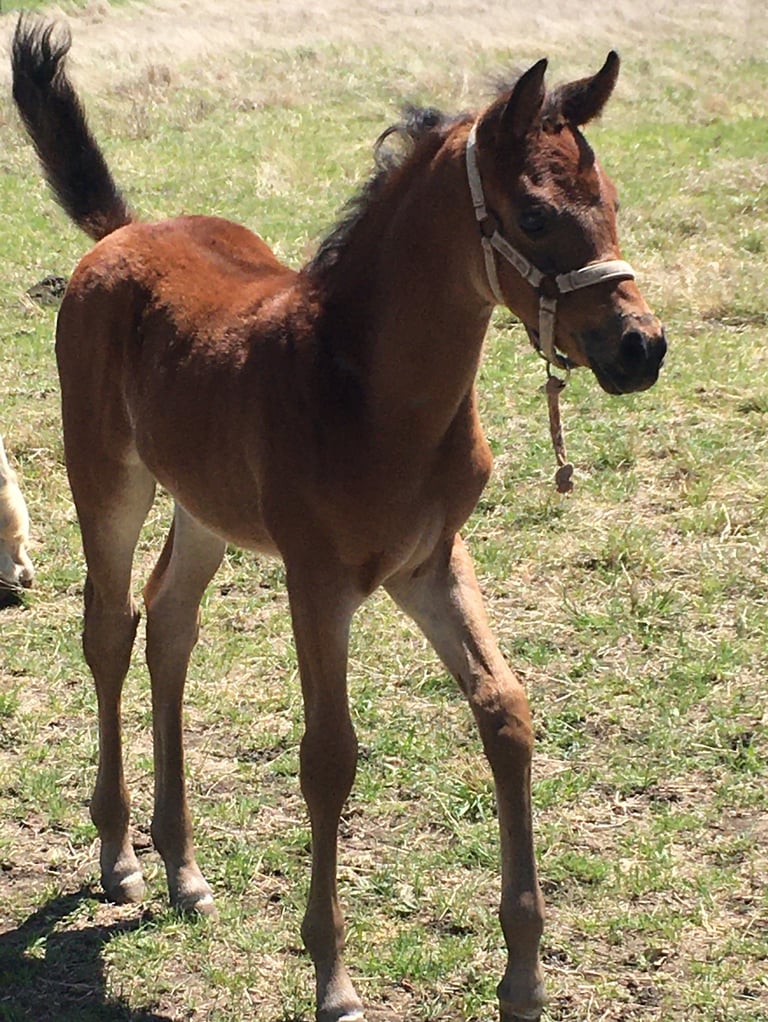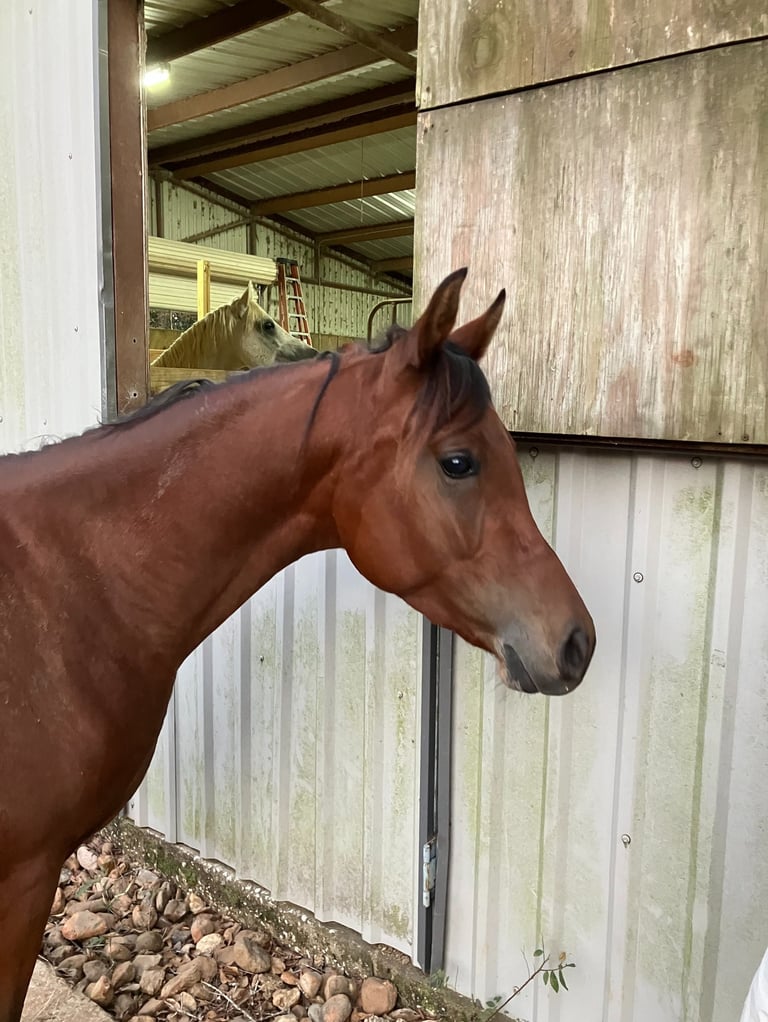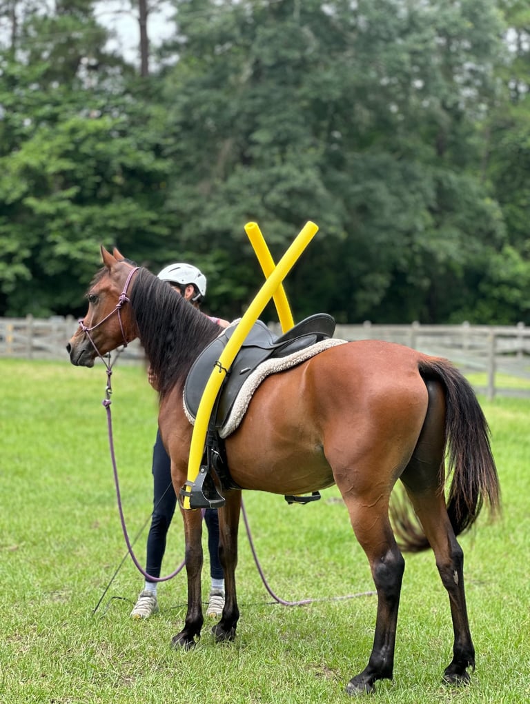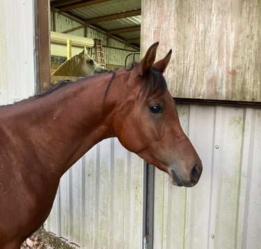 Roo is an exceptionally gentle, cooperative, and kind straight Egyptian gelding. He will be an ideal small adult or child's horse, as he is careful to please and takes everything new in stride. He is a big hearted horse in a small package at only 14 hands, though he may still grow a little. His conformation is near perfect and his hooves are tough and uniform in shape and size. He is currently training under saddle, and his price will increase as his training progresses. As of January 20, 2026, he has had eight rides, with three on his own on the forest trail.