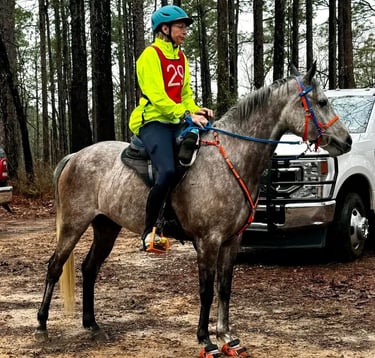 "Little" has a very big personality and is proving himself to be an outstanding distance horse. He won the Arabian breed award in NATRC Region 4 for the 2025 season and really grew up in the process. He also finished the 2025 season with 50 AERC LD miles and then did another 100 LD miles in January of the 2026 season. He will likely be moving up to the 50 mile distance for the remainder of the 2026 season, unless we decide to go for the SOCO LD Championship in August.